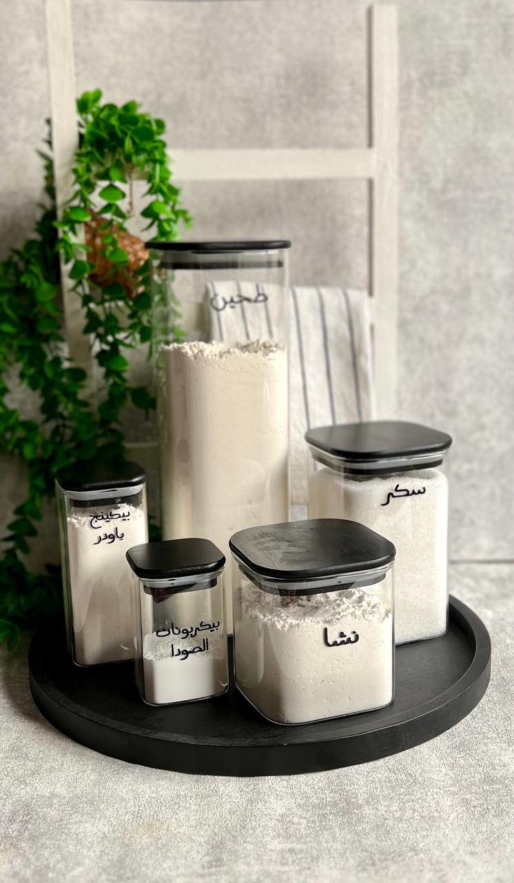 Tray's diameter: 35 cm 1st Jar Size: 10cm * 30 cm 2nd Jar Size: 10cm * 15 cm 3rd Jar Size: 10cm * 10 cm 4th Jar Size: 350 Ml 5th Jar Size: 250 Ml